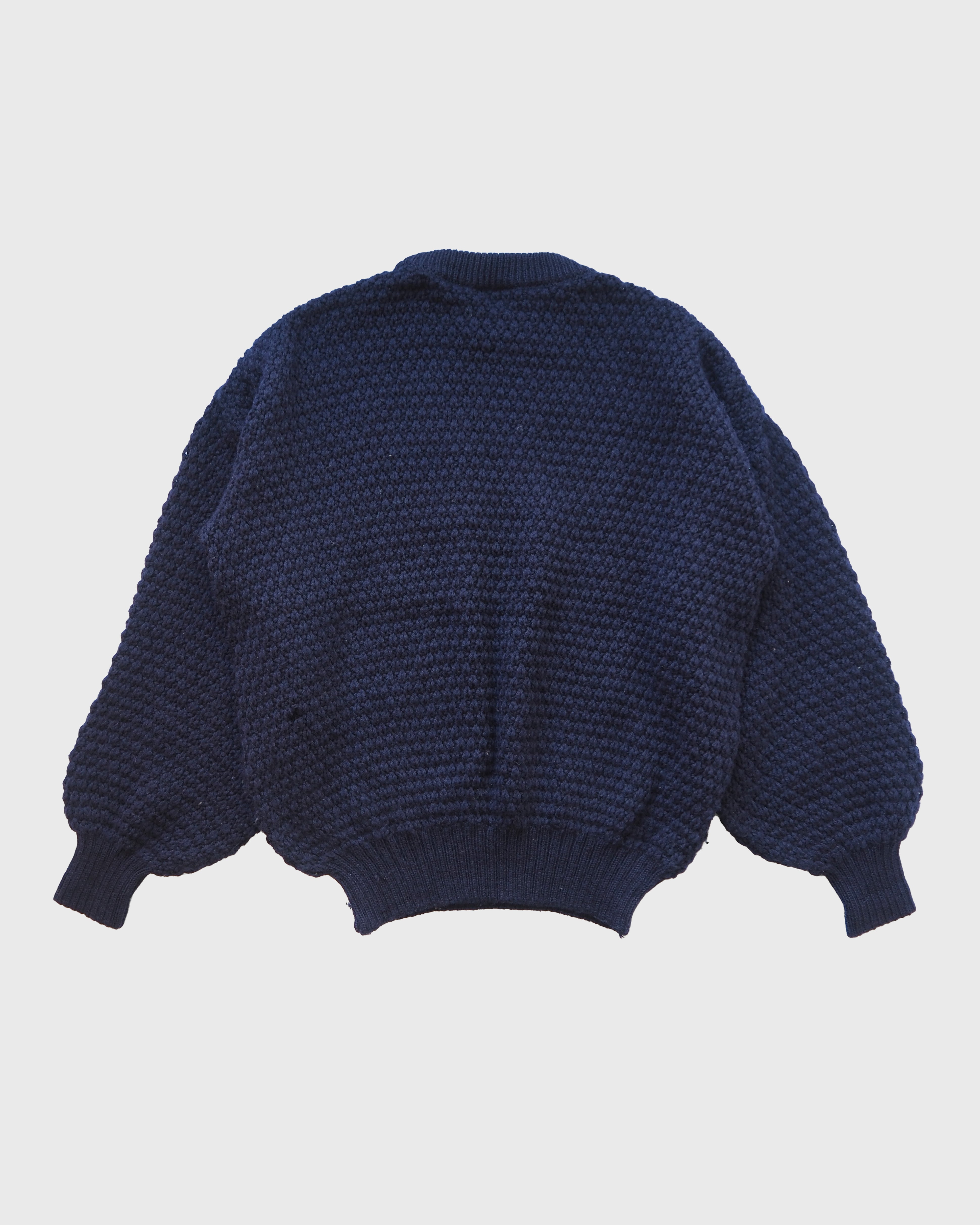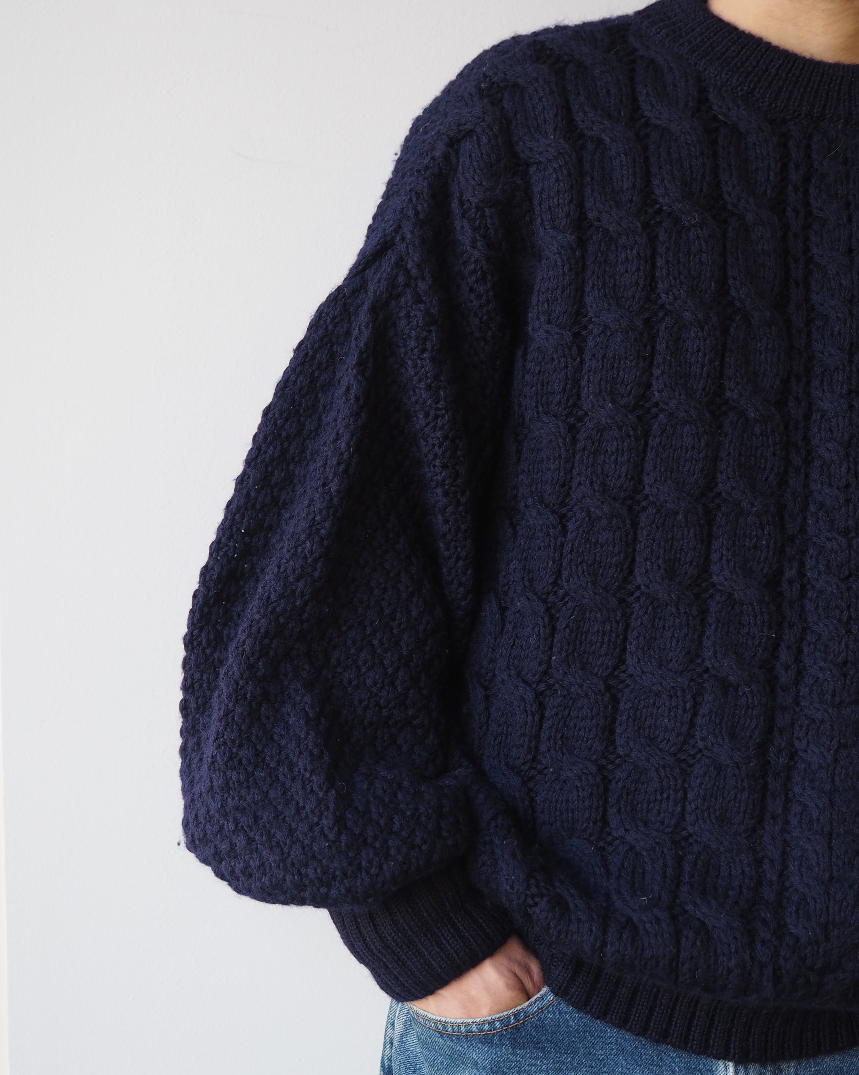 ゆったりとした袖と、ざっくりと編まれたデザインが